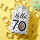 Celebrate a milestone with this stylish 70th birthday Can Cooler, featuring bold “Hello 70” text, playful black and white dots, and your favourite photo of the guest of honour. Thoughtful and fully customisable, it’s perfect for sending warm wishes on their special day. Personalise the name on the back. Change the number to make this 60 or any other year with a zero for the photo.
