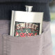 The product is a good size and came exactly as it was pictured. The lid is not attached to the flask, which could be dangerous on drunken nights... The print came out surprisingly well and looks very sharp. Would definitely recommend.