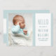 Hello Baby Boy Photo Blue and White Birth Announcement