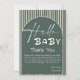 Hello Baby Dark Green Stripes Baby Shower Thank You Card