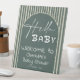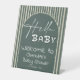 Hello Baby Dark Green Stripes Baby Shower Welcome Pedestal Sign
