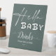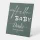 Hello Baby Elegant Dark Green Baby Shower Drinks Pedestal Sign