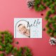 I looked through many templates and saw this one and it was perfect! Loved the rose gold foil (I changed the initial “hello” to thank you and a different font. I loved it. Colors looked great with my photo. Great. Only complaint is the shipping packaging. It wasn’t a very protective package more so just an envelope so one of my cards got messed up.