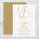 Hello Baby Gold Heart Script Baby Shower Invitation