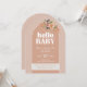 Drawing inspiration from minimalist and mid-century design, this invitation will bring a sense of boho chic to your event. Ideal for a baby shower, baby brunch or high tea - you can customise the description to suit your event! Headline: "Hello, Baby". Dusty pink and beige tones and a floral accent.