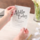 Hello Baby Modern Script Birth Announcement. Hello Baby is in stylish modern set script and the rest of the words you can easily personalise. Vellum translucent invitations offer a refined and modern design that can be standalone or layered over a background card for an extra special touch. Perfectly versatile, these overlays pair beautifully with background designs such as photos, floral graphics, or bespoke artwork. PLEASE NOTE: This listing is for the vellum overlay only. Background cards are sold separately.