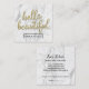 Hello Beautiful 3D Gold Script White Marble Beauty Salon Referral Business Cards.