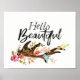 Hello Beautiful Antler and Flowers Poster
