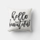 This design features the phrase "hello beautiful" in a black, modern handwritten script. Pillow colour can easily be customised to match your decor.
