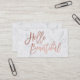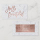 A modern, stylish custom name beauty business card with modern hand lettering style elegant brush typography saying Hello beautiful in faux rose gold foil on a trendy and elegant white marble background. If you need any customisation, don't hesitate in contacting me