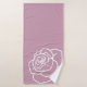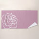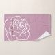 The product design features a simple large rose illustration in retro pink and white. This elegant botanic design makes modern chic and unique bath towels with personalised text.