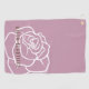 The product design features a simple large rose illustration in retro pink and white. This elegant botanic design makes a modern chic and unique golf towel with personalised text.