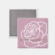 The product design features a simple large rose illustration in retro pink and white. This elegant botanic design makes a modern chic and unique magnet with personalised text. Gift idea for her birthday, wedding favours, Mother’s Day, and more!