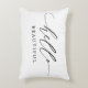 This modern throw pillow features the word "hello" in an elegant black script with "beautiful" written underneath, or personalise it to say whatever you'd like. Background colour can also be changed to any colour.