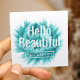 Hello Beautiful Modern Teal Feather Salon Referral Card