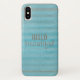 Hello Beautiful Quote Boho Striped Pattern Phone Case. Bohemian Hello Beautiful Quote Striped Pattern On iPhone X Case. Typography with teal blue and stripes. Design by Bohemian Girl.