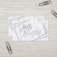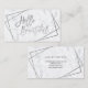A modern, stylish custom name beauty business card with modern hand lettering style elegant brush typography saying Hello beautiful in faux silver foil on a geometric faux silver doubles stripes frame on a modern white marble background. If you need any customization, don't hesitate in contacting me