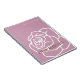 The product design features a simple large rose illustration in retro pink and white. This elegant botanic design makes a modern and unique notebook with personalised text.