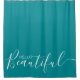 This shower curtain features girly hello beautiful text in white colour on teal background.