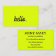 Hello Chartreuse Yellow Black Script Neon Colour Business Card