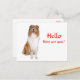 Aww...who can resist the sweet face of a Collie Puppy Dog? This fun greeting postcard features a happy Collie pup sitting on a crisp white background. This sweet doggy is ready to help you send Hello greetings to family and friends. Canine postcards are the economical alternative to a greeting card when you want to send a quick note to let someone know your thinking of them.