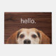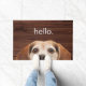 Welcome your guests to your home with a cute and funny photo of JoDog the Smiling Beagle spying on you and the simple word, "hello." on a dark wood background. Great gift for the dog or animal lover or as a housewarming gift. Photograph of JoDog and design © by TK Goforth, all rights reserved.