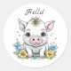 Hello! Cute Pig with Flower on her Head Classic Round Sticker