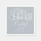 Decorative rustic script "hello" with flourishes and a butterfly stencil illustration coupled with gender reveal script in elegant handwritten font. Very easy to customise with your information and rustic elegant announcement gender announcement and you can change the colour of the background beyond the existing choices of dusty blush and baby blue.
