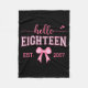 Hello Eighteen Est 2007 Coquette Bow 18th Birthday Fleece Blanket