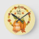 Hello Fall Autumn Leaves Pumpkins Wall Clock