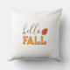 The design shows a "hello fall" colourful vibrant text in typography and calligraphy and a colourful terracotta burnt orange fall leaf. The design will be perfect for any household.