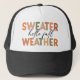 This vibrant fall artwork perfectly captures the cosy essence of the season with its playful typography and warm colour palette. The design features the bold phrase "Sweater Weather" in large, blocky letters that alternate in shades of orange, beige, green, and brown, evoking the changing colours of autumn leaves. The phrase "hello fall" is nestled in between, written in a flowing, cursive script that adds a touch of elegance and warmth to the design.