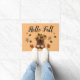 "Hello Fall" Fall Welcome Burnt Orange Door mat. This welcoming Fall welcome door mat will be a wonderful addition to your front door! This doormat has a watercolor shoe design with Fall leaves falling down.