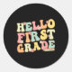 Hello First Grade Team 1st Grade Teacher Girl Back Classic Round Sticker