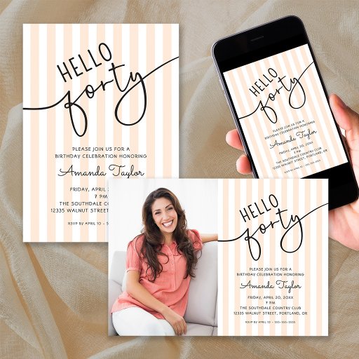 Hello Forty Modern Script Chic 40th Birthday Party