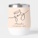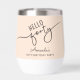This 40th birthday wine tumbler showcases modern script reading “Hello Forty,” complemented by a light orange background. It's simple yet stylish design makes it a perfect birthday gift for a wine lover.