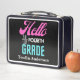 Hello Fourth Grade, Back To School Metal Lunch Box. Customise it with your name for a chic girly unique look.