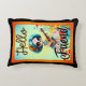 The cushion is small to medium sized. It can be washed. It is well constructed. The material used is pleasant and feels decent quality. It has a very slight plush feel which is good. It is well labelled and its care clearly stated. Theres nothing not to like about it. All in all a good item. The deduction of one star overall is due to long delays in delivery to the UK. It's not clear if this was due to Zazzle or somewhere else in the chain as I did not receive status updates of dispatch or progress. I cannot comment anymore on that other than to say that was our experience but it may not be the same for you. The printing was surprisingly close to what we were expecting. Its an art piece and on material so its hard to assess the precision of printing but it seems close to the original. The soft lines are reproductions of the original. The colour is a fair reflection of the painting. This was printed in the US and it looks like US quality. No issues.