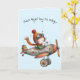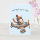 A whimsical illustration of a kid flying a prop plane adorns this "hello" greeting card. "Just flyin' by to say..." "Hope you have a wonderful day!" Text on front and inside can be changed. AI assisted graphic purchased with commercial use. Artwork: RedHeronLighthouse