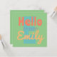 kids birthday card name summer hello from template Invitation card pastel greeting blank inside, mint green, coral orange, peach, blue for teens or kids children in 50s Americana Florida font