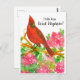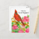 A "Hello from West Virginia" postcard decorated with a cardinal bird in a blooming pink rhododendron flowering bush illustrated with ink and watercolor. Inspired by the state bird and state flower of West Virginia. You can edit or remove the text to fit your needs.