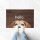 Welcome your guests to your home with a funny photo of JoDog the Smiling Beagle spying on you and the simple word, "hello." on a dark wood backgroun. Great gift for the dog or animal lover or as a housewarming gift. Photograph of JoDog and design © by TK Goforth, all rights reserved.