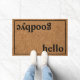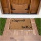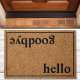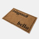 Hello Goodbye Modern Custom Family Doormat. What a cute country way to say hello and goodbye. Personalise this custom rustic burlap look doormat with your own text. Makes a great housewarming gift.