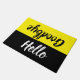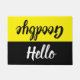 Black and white simple modern hello and goodbye door mat. When visitors come they will see hello and when they leave they will see goodbye.