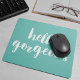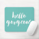 Sunny turquoise mousepad features "Hello Gorgeous" in white brushstroke lettering. Use the optional personalisation field to add a name, monogram or text of your choice!