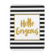 Hello Gorgeous Black & White Gold Glitter Stripes Magnet