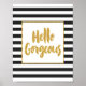 Hello Gorgeous Black & White Gold Glitter Stripes Poster
