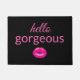Glam up your decor with this custom "Hello Gorgeous" Doormat. This design features an image of glossy pink lips along with pink font set against a black background.