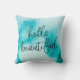 Hello gorgeous hand-lettered watercolour pillow in aqua blue. Looks great in the living room or bedroom!