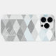 Hello Grey and Aqua Serenity Blue Abstract Art Triangle Pattern Linen Overlay Pattern iPhone Case
